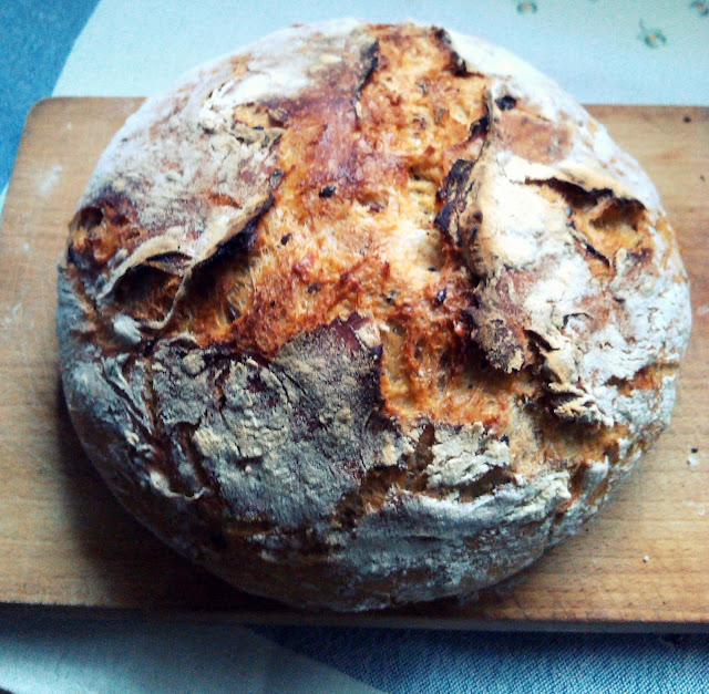 Niesamowity chleb ze wspaniałą skórkę… przypomina starodawny wypiek z tradycyjnej receptury. Zachwycający jest nie tylko smak, ale także wykonanie, a dokładniej jego łatwość. Bez zagniatania, jedynie nocne leżakowanie. Taki chleb można zjeść od razu , przy większej liczbie osób nie ma szans na przetrwanie 😉 Przepis ze strony kwestiasmaku.com , polecam obejrzeć filmik na youtube – wiele wyjaśnia. Zabieramy się za pieczenie…