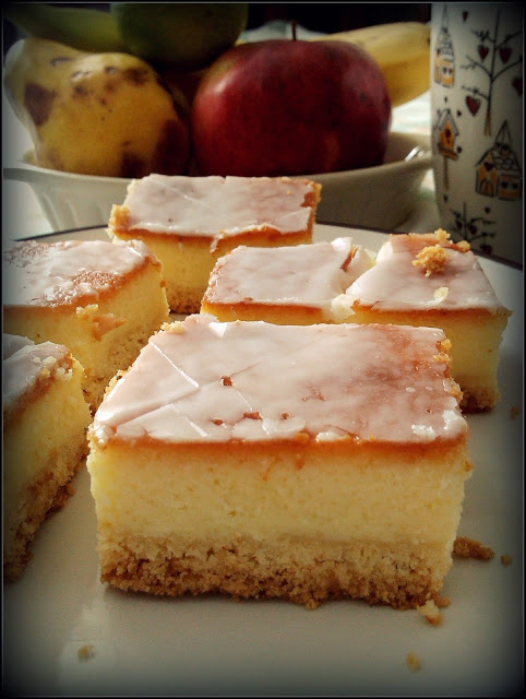Wierzch polałam cytrynowym lukrem . Do lukru dodałam sporą ilość soku z cytryny. Smak i gęstość lukru według upodobań.