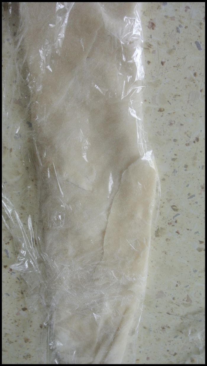 Tak przygotowane ciasto przeleżało całą noc w lodówce. A poniższe ( powyższe również) zdjęcia pokazują właśnie ciasto nie z czasu przygotowywania, ale właśnie już po “odsiedzeniu” w lodówce. Nie jest wyschnięte, da się nim formować kształty. Więc myślę, że jest okej 🙂