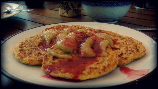 Ale po co od rana zaprzątać sobie myśli, lepiej skupić na pysznym śniadaniu, a dziś oferuję bardzo zdrowe placki jaglane z musem rabarbarowym i według upodobań dodatkiem np. brązowego cukru,czy owocowego soku 😉