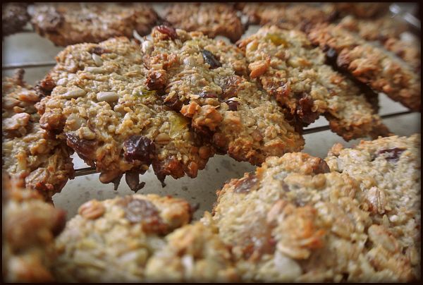 Ciasteczka powstały z potrzeby zrobienia komuś przyjemności – aby wywołać uśmiech na twarzy. Wiele można by upiec, ale ciastka są tym produktem, który cieszy bardziej. Małe, słodkie, na dwa kęsy… takie milutkie 🙂 Owsiane tym bardziej bo zdrowe, a smak naprawdę niepowtarzalny: z miodem, karmelem, orzeszkami i bakaliami … czyli nie oszczędzamy na dodatkach 🙂