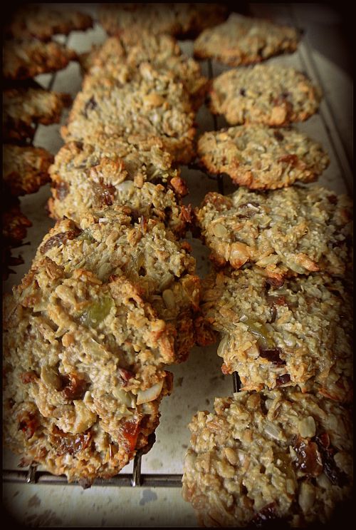 Ciastka są bardzo dobre, nie przesłodzone. Orzechy, bakalie, karmel i wiórki nadają aromat , a sam wypiek zyskuje na smaku 🙂