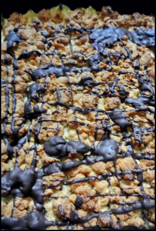 Na upieczone ciasto dodajemy polewą. Może to być od razu po wyjęciu z piekarnika.