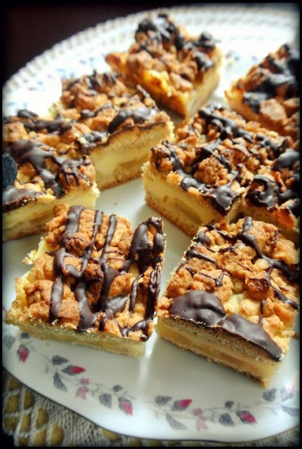 Ciasto kroimy dopiero po ostygnięciu, ponieważ budyń jest jeszcze ciepły i lekko płynny!