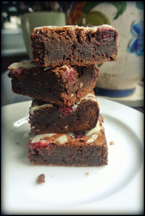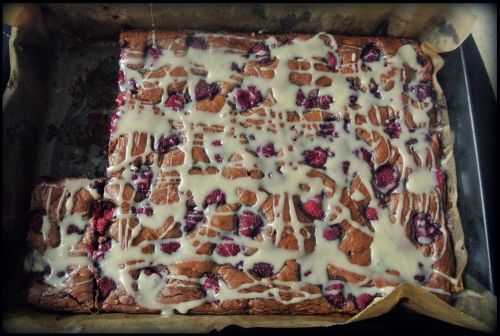 Najlepsze brownies , z malinami i białą czekoladą.