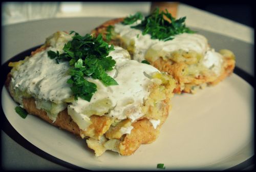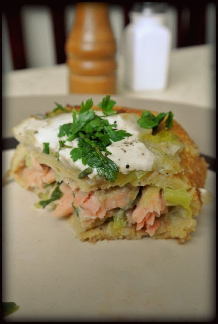 Postanowiłam wykorzystać moment i zrobiłam coś nowego. Przeglądałam swoje książki kulinarne albo gazetki – nie mam tego zbyt wiele, ale udało mi się znaleźć coś interesującego. U Davida Lebovitza znalazłam przepis na naleśniki z cieciorki serwowane w którymś z regionów Francji. Dodałam do tego świeżą rybę i sos z porów, który znalazłam w mini książce “Naleśniki na 100 sposobów” . Moja wersja sosu bardziej dietetyczna, ale i tak bardzo smaczna.