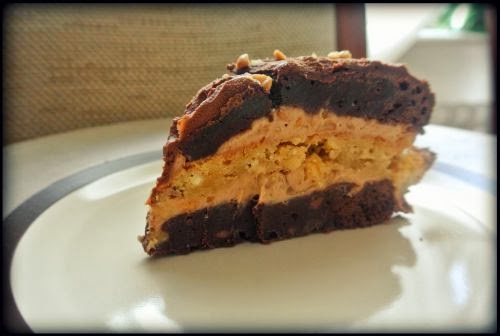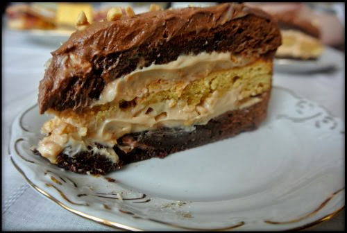 Tort brownie & blondie z orzeszkami, kremem karmelowym i czekoladowym.