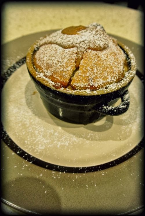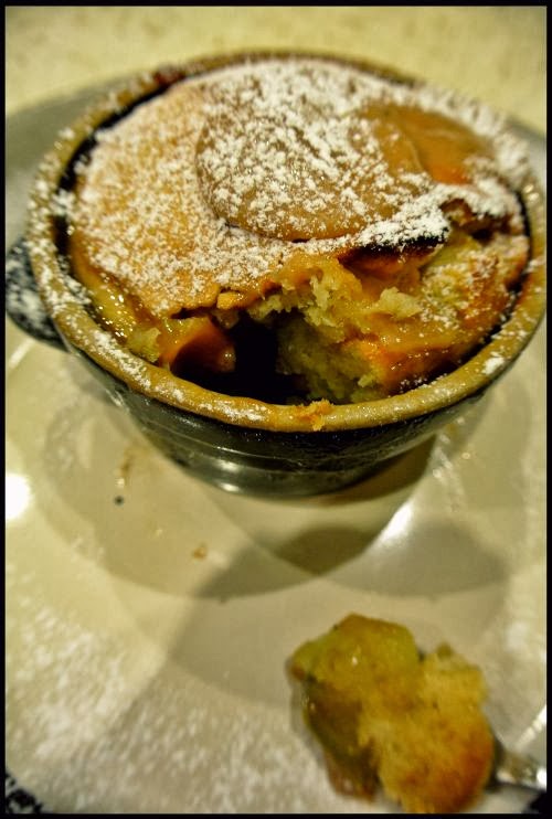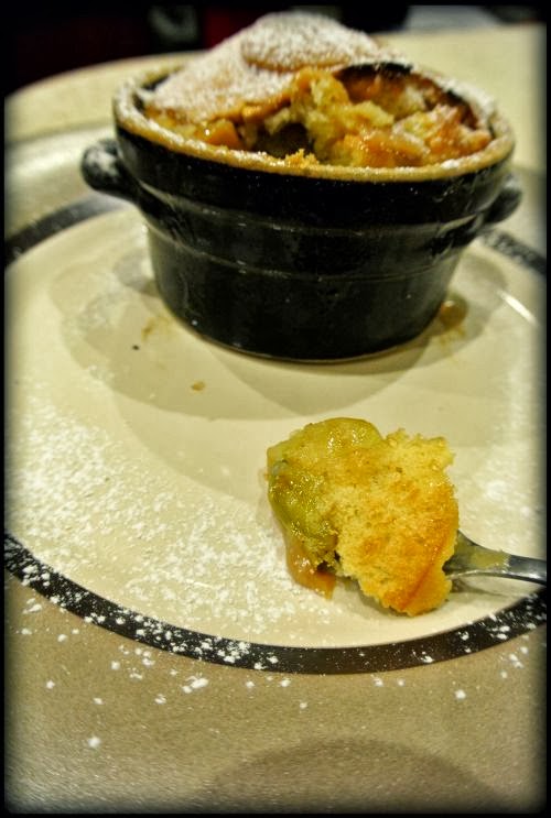 Pyszny deser bądź jednoosobowe ciasto. Jabłka podsmażane w karmelu, następnie pieczone pod pysznym ciastem, które przypomina trochę muffinki, trochę ciasto ucierane i trochę biszkopt. Jest wilgotne, puszyste i bardzo delikatne. Koniecznie do wypróbowania 🙂