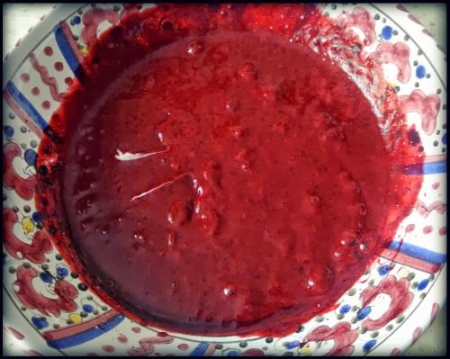 ( na zdjęciu sos z owoców, po ugotowaniu i zmiksowaniu – przed dodaniem białek)