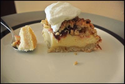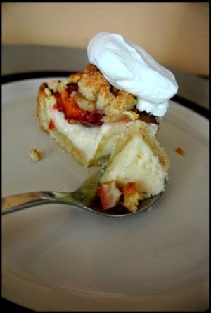 Tarta z owocami pieczona z kremem jogurtowym i kruszonką.