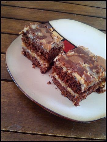 Tradycyjna ( przynajmniej mam taką nadzieję) receptura na znane ‘Niemieckie Ciasto Czekoladowe – German Chocolate Cake, którego korzenie pochodzą z USA , a określenie niemieckie odnosi się do nazwy czekolady 🙂
