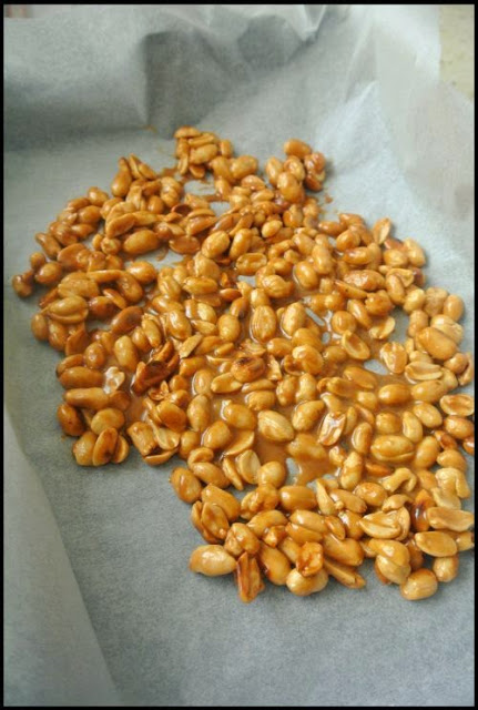 Część orzeszków zmielić w młynku , drugą część drobno połamać najlepiej za pomocą tłuczka 🙂