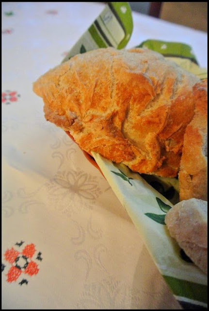 w oryginale trochę inna metoda. Po pierwsze: bez użycia garnka, ale ja lubię w nim piec, bo chleby mają wyjątkową skórkę. Po drugie: pieczenie w formie na blasze odbywa się cały czas w bardzo wysokiej temperaturze a uchylaniem drzwi piekarnika: zmniejszenie temp. daje podobny efekt.