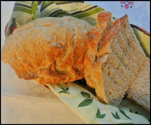 Przepyszny chleb. Co prawda na białej mące pszennej, ale z domieszką razowej żytniej i pszennej. Dzięki temu dodatkowi chleb jest bardziej szary, ale ma też bardziej konkretny smak. Skórka jest chrupiąca, miąższ delikatny i miękki.