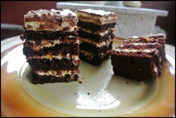 Ciasto odstawić na kilka godzin, aby wszystkie smaki się połączyły, a kremy usztywniły.