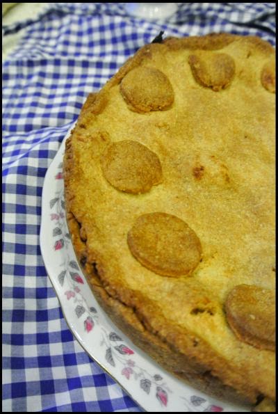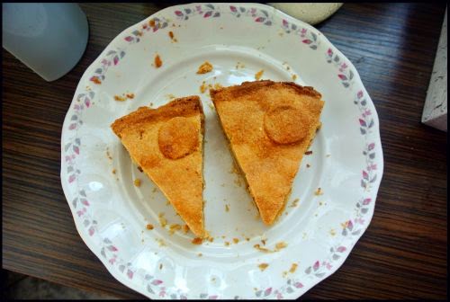 Szarlotkę piekłam w 180 stopniach przez 40-45 minut. Po 20 minutach nałożyłam na wierzch moje krążki. Ciasto należy piec do zrumienienia.