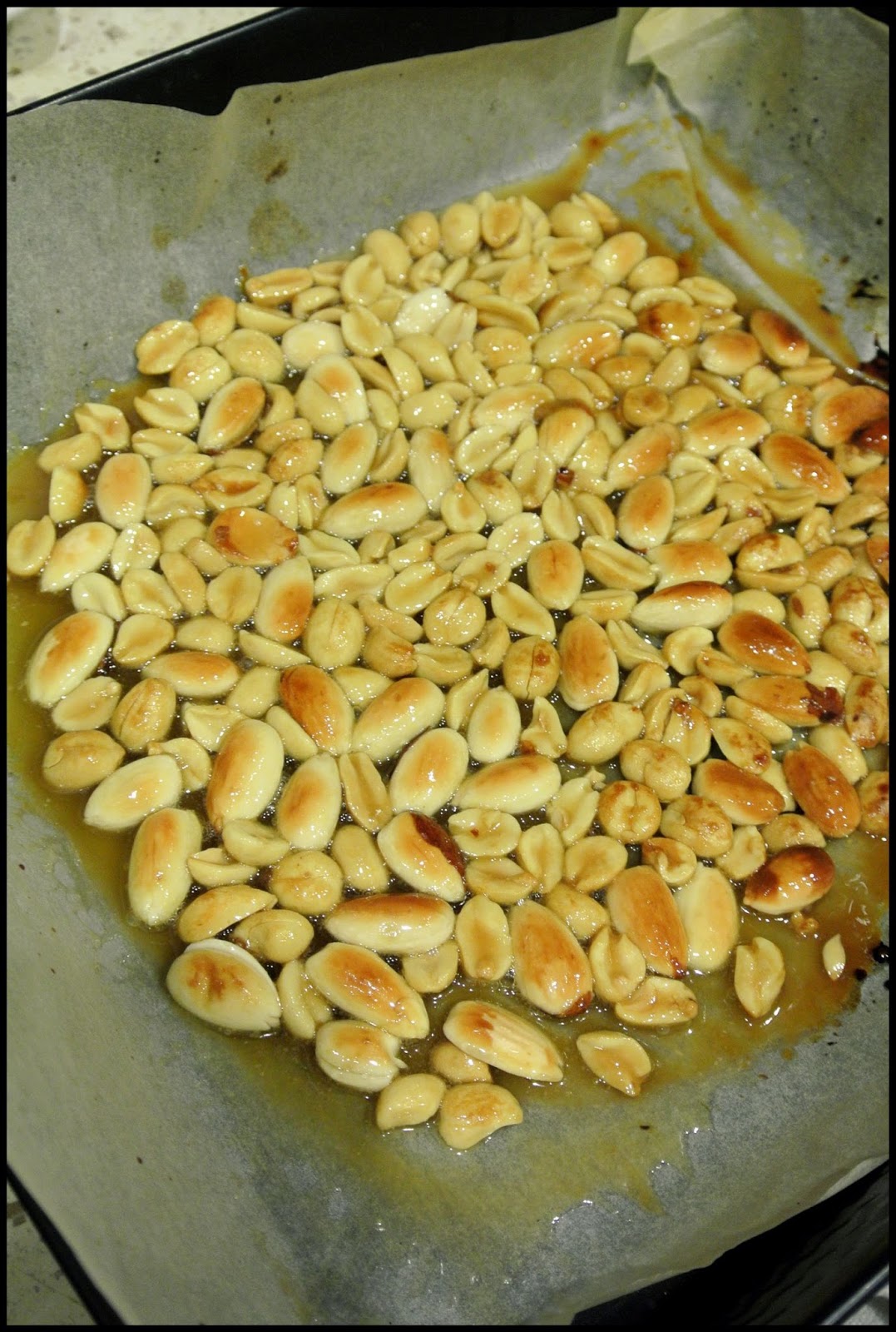 Masło, cukier i woda = rozpuścić i gotować, aż masa nabierze jadnego brązowego koloru.