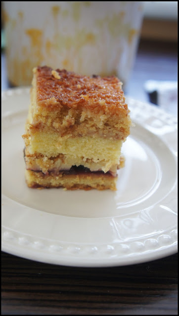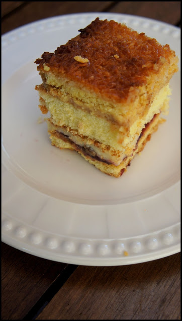 Ta propozycja to istna rozpusta dla podniebienia. Kruchość ciasta przeplatana delikatnością biszkopta. Kokos w połączeniu z karmelowym smakiem tworzą przepyszny duet. A gdy dodamy waniliowy krem i kwaskowatość dżemu porzeczkowego to powstaje ciasto idealne na przyjęcie, chociaż uwaga – możecie mieć problemy z podzieleniem się nim, egoizm żołądka da o sobie znać 😀