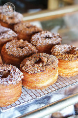 9. Cronut- czyli połączenie pączka z croissantem – półfrancuskie ciasto smażone na oleju. Pięknie rozwarstawiające się. Amerykański wynalazek- Dominique Ansel wpadł na pomysł usmażenia croissantów ( jakby same w sobie miały mało tłuszczu 😀 ). Przed smażeniem pozostawić należy do napęcznienia, dzięki temu są puszyste i wysokie. Gotowe cronuty są chrupiące z wierzchu – posypane cukrem albo nadziewane też czasem kremem budyniowym.