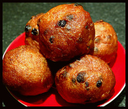 13. Oliebollen– holenderskie kuleczki smażone oczywiście w oleju. Przyrządzane na sylwestra i w okresie noworocznym, ale idealnie plasują się w nasz tłusty czwartek. Można powiedzieć, że to taka bardziej tłusta wersja bułeczek z bakaliami- do ciasta drożdżowego dorzucane są rodzynki oraz kawałki jabłek. Bardzo ciekawy przepis.
