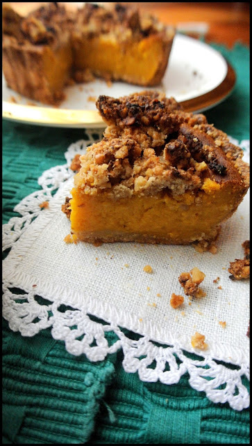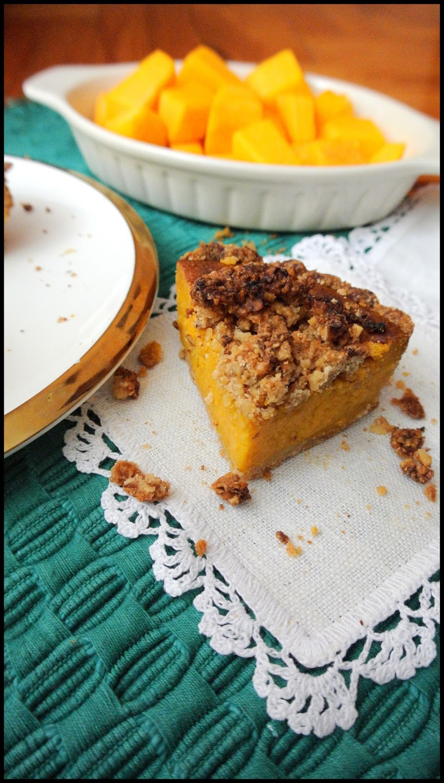 Pyszna tarta dyniowa z orzechami pekan z przepisu Marthy Stewart. Słodka, ale nie mdląca. Aksamitny farsz i chrupiący wierzch. U mnie orzecha kruszonka w niektórych miejscach trochę za bardzo się przypiekła, ale w smaku była bomba. Aaa, nie będą się rozpisywać, tylko od razu wezmę się za przepis 🙂
