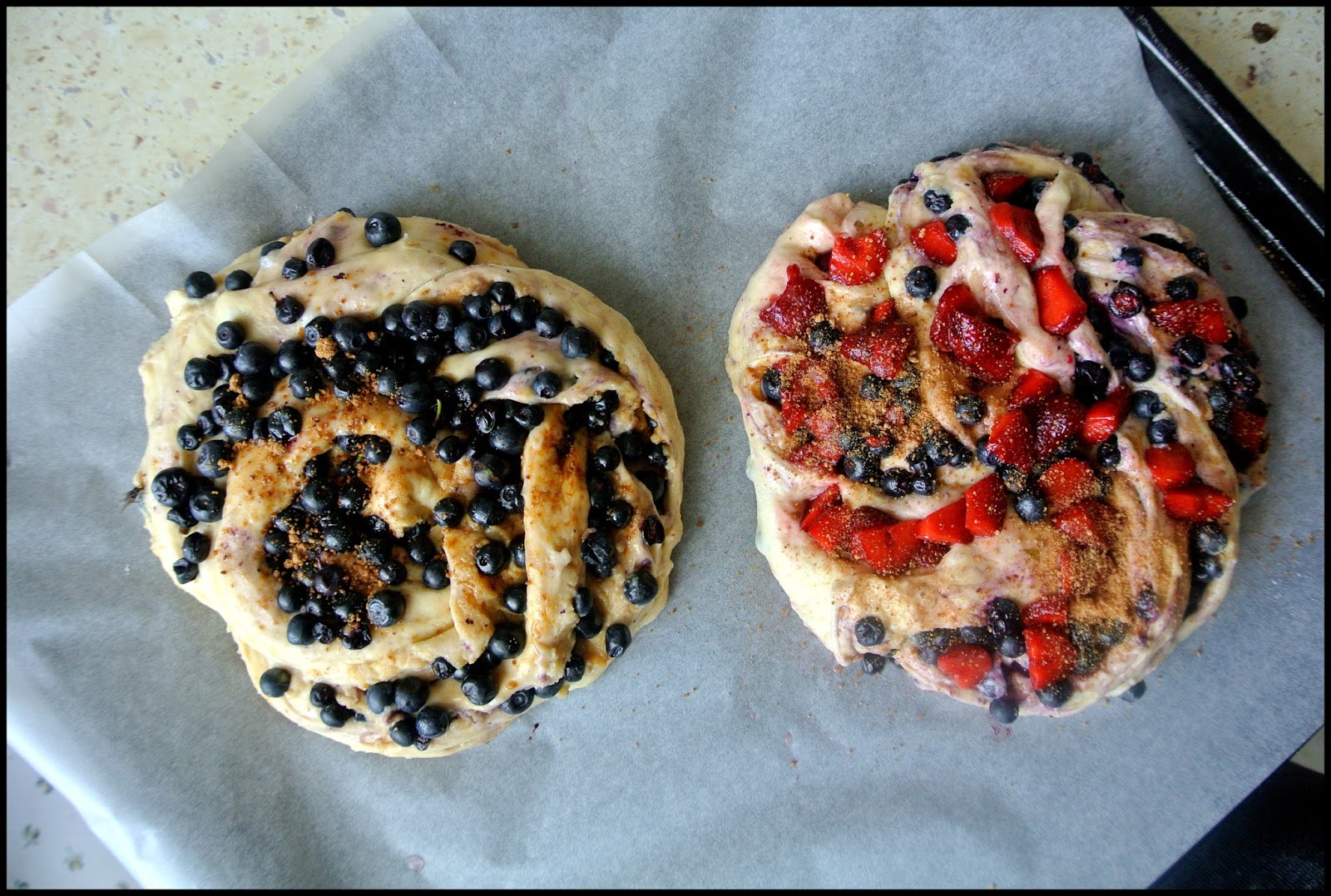 Ciasto jest bardzo uniwersalne, idealne właśnie do zawijanych wypieków. Zamiast świeżych jagód możecie użyć dżemu jagodowego albo w wersji jesiennej powideł śliwkowych.