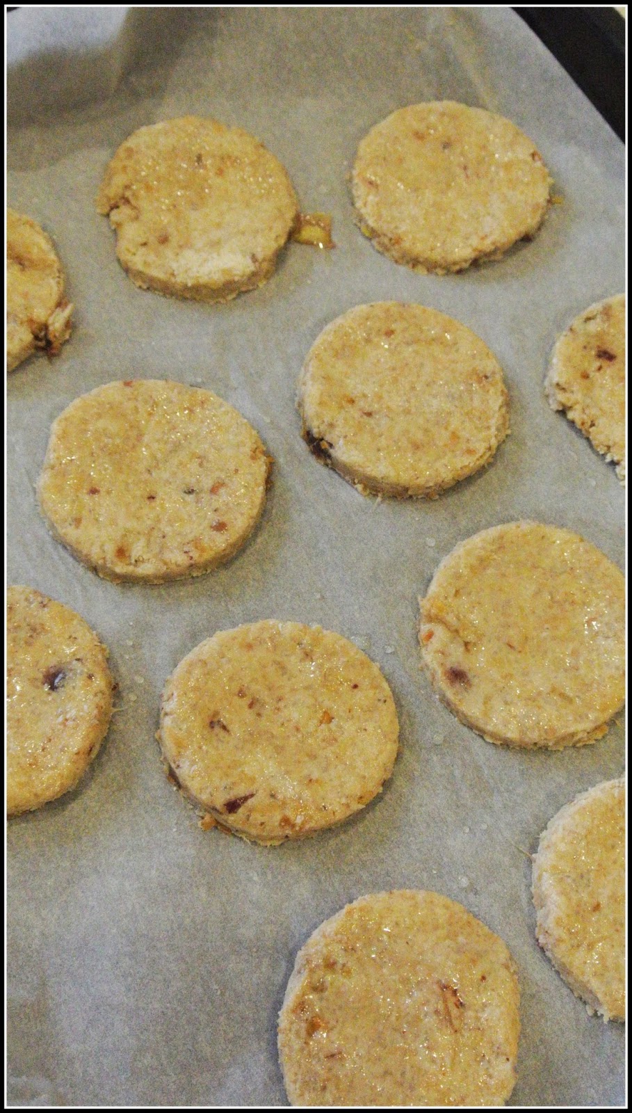 Następnie najlepiej wziąć duży arkusz papieru do pieczenia. Posypać go mąką i wyłożyć ciasto- będzie ono dość miękkie. Posypać je delikatnie mąką. Przykryć drugim arkuszem papieru i rozwałkować. Ciastka nie powinny też być zbyt cienkie.