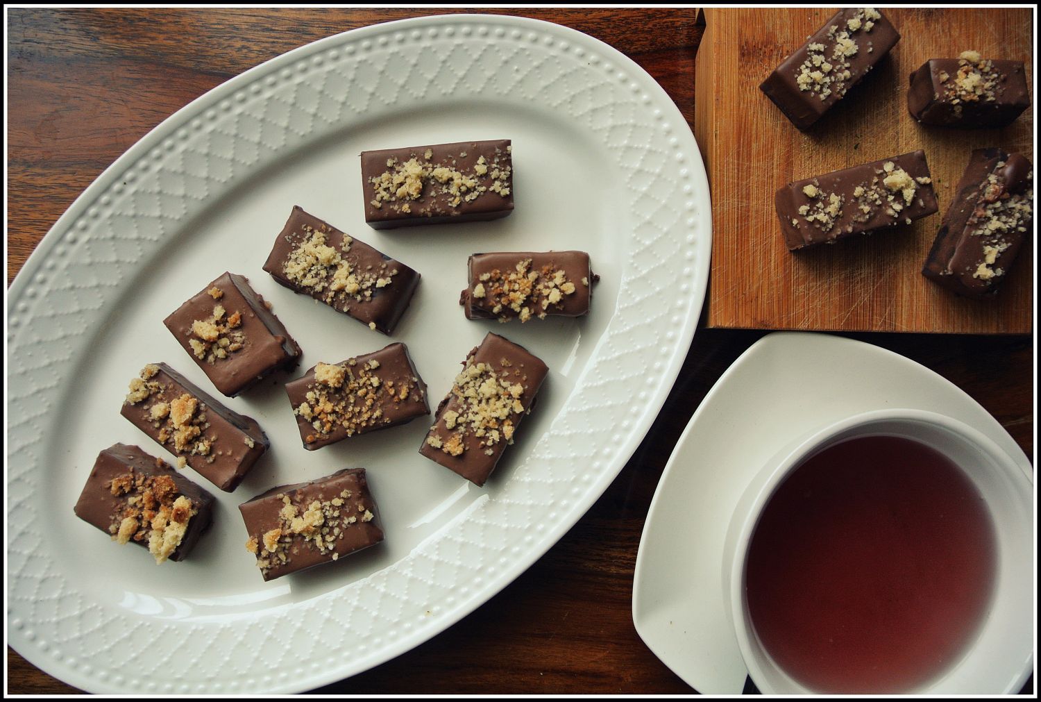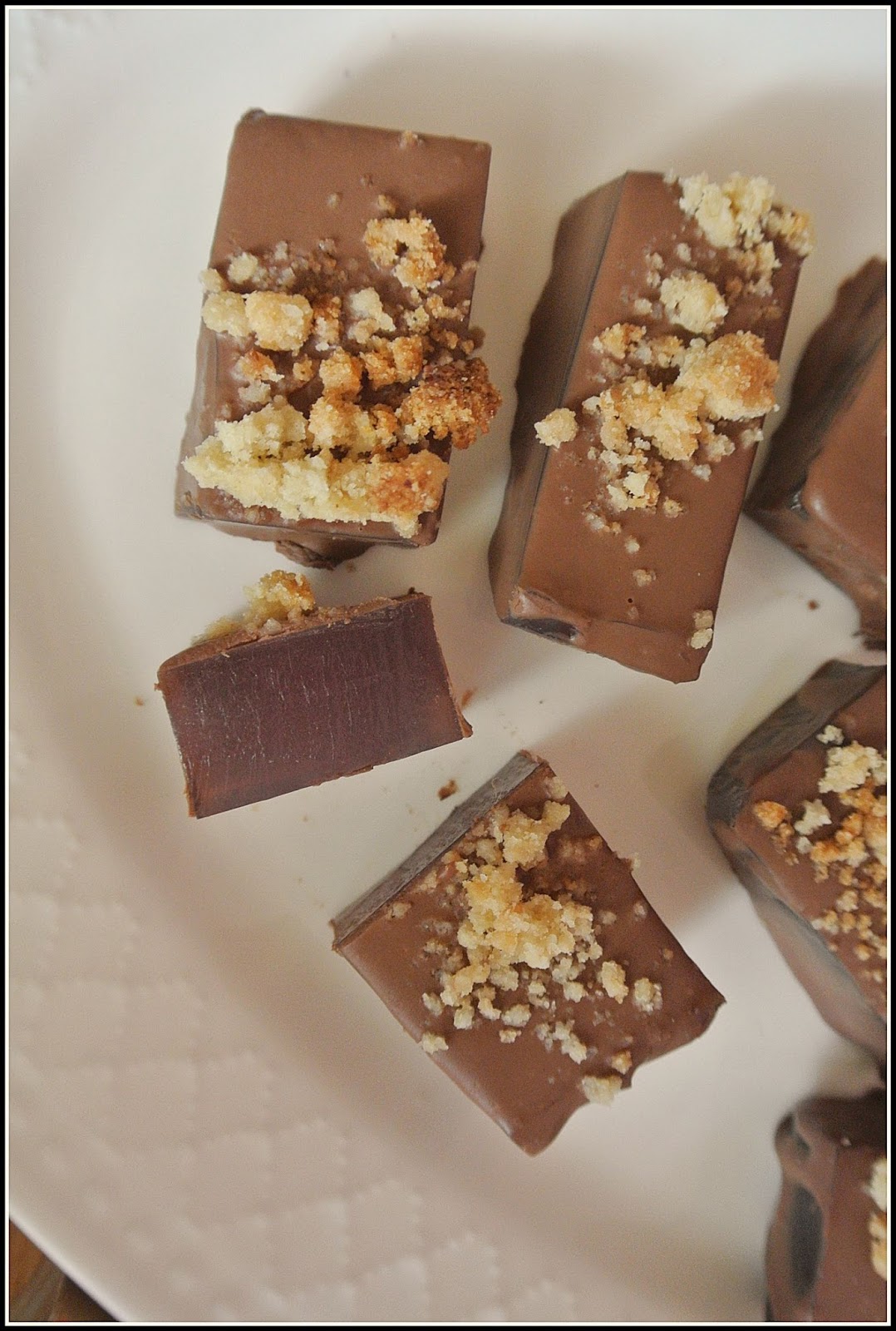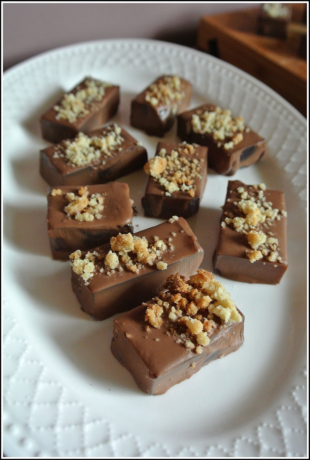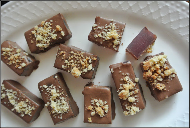 Galaretki pokroić, oblać czekoladą i posypać kruszonką z ciastek.
