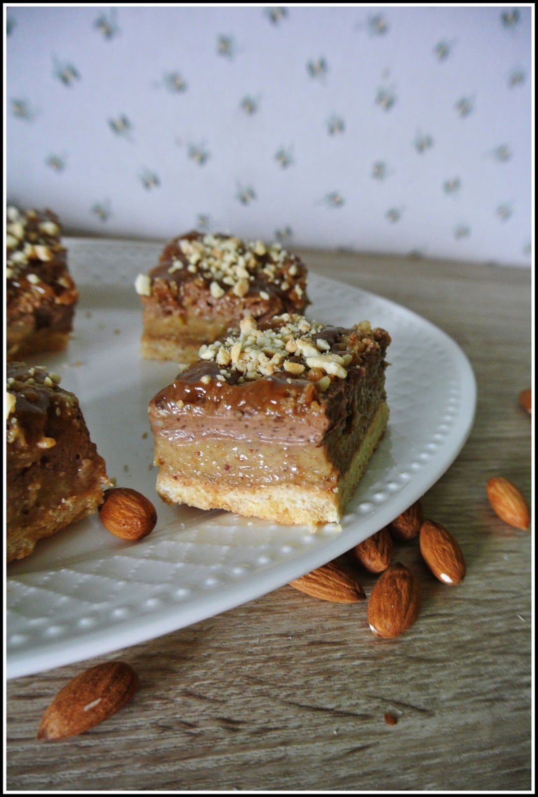 Zapraszam więc na wegańską kostkę z kremem migdałowo-karmelowym oraz czekoladowym. A wszystko na kruchym bezglutenowym spodzie 😉 Gwarantuję, że będziecie zachwyceni 😉
